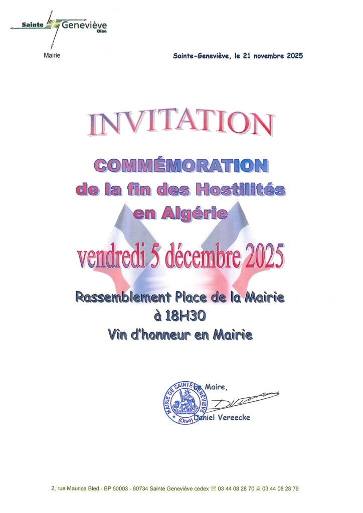Commémoration de la fin des hostilités en Algérie, 5 Décembre.