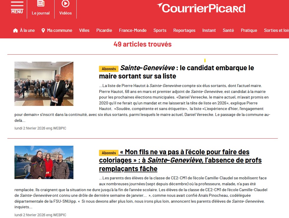 Dans Le Courrier picard de ce 3 Février, tout va bien à Sainte-Geneviève…