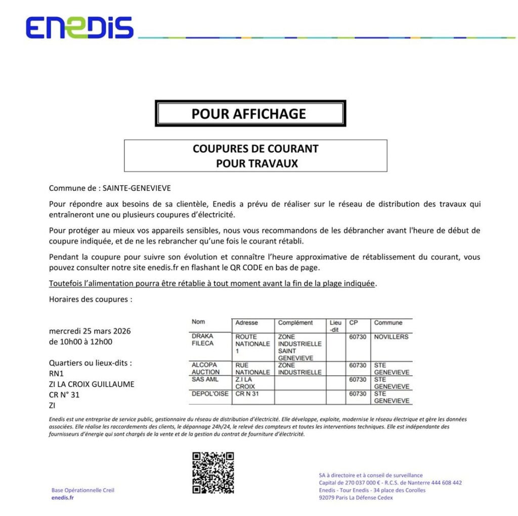 - ENEDIS annonce des coupures de courant