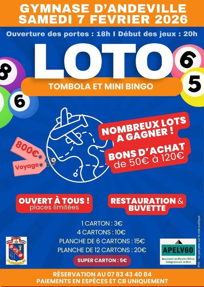 • L’APELV fait son loto le 7 Février…20 janvier 2026
