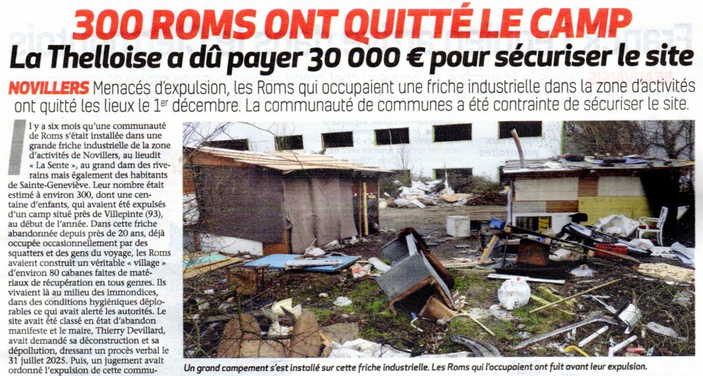 L’Observateur de Beauvais (19/12/25) revenait sur le départ des Roms de la friche industrielle Métalform…
