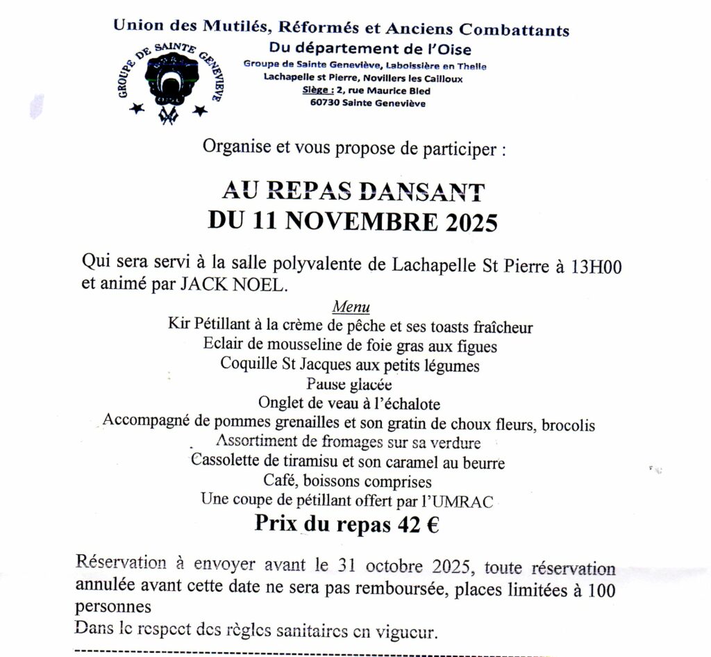 - L’UMRAC propose son repas du 11, réservez!par Le GénovéfainSuivez-nous, s'il vous plaît... 5 20