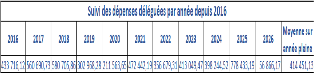 Nos derniers échos du Conseil (12/02/26): les dépenses déléguées… ça sent les élections! 16 février 2026 Le Maire commente les opérations qu’il a réalisées dans le cadre de ses délégations. On peut constater que le niveau de dépenses réalisées est le plus sur les dix années recensées et de loin puisqu’il dépasse de près de 47% la moyenne de cette période. Le 1er mois de 2026 est élevé mais concerne essentiellement des assurances et abonnements périodiques. Suivez-nous, s'il vous plaît... 5 20