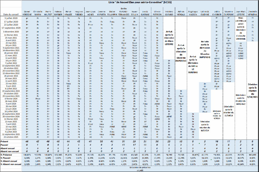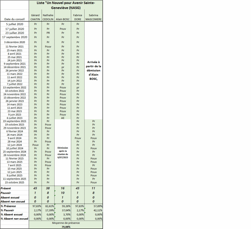 Les présences du groupe « Un Nouvel Avenir pour Sainte-Geneviève