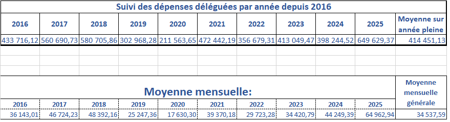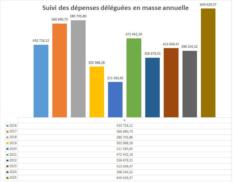 Le Maire fait une énonciation assez rapide des différentes dépenses réalisées dans le cadre de sa délégation. Il donne des explications sur certaines et notamment sur celles concernant le déplacement du mur d’enceinte de l’ancienne école du Petit Fercourt dont les travaux ont commencé cette semaine. Il n’y a pas de question majeure qui soit posée. On peut constater que le niveau des dépenses est le plus élevé depuis 2016, année à partir de laquelle nos relevés sont établis, ce alors qu’il reste encore plus de deux mois pour arriver à la fin de l’année. Dans ces opérations figurent les dépenses concernant un jardin du souvenir dont les décisions ont été prises en Commission travaux. Le fleurissement occupe une part importante avec près de 30 000€ depuis le début de l’année.