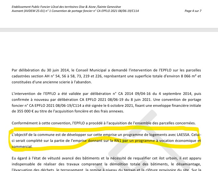 -Point de l’ordre du jour: 6) Approbation Avenant no 1 à la convention de portage foncier avec I’EPFLO – Opération « Rue du Centre » – Engagement des travaux de démolition et remise en état.