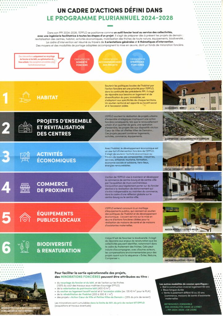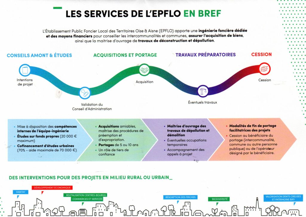 Par rapport aux prochains projets sur le terrain DENIS et à l’implication de cet organisme public départemental, nombre d’habitants interrogent sur ce qu’il est, son rôle, ses missions. Cette présentation, à partir d’un document diffusé sur la récente assemblée générale de l’UMO (Union des Maires de l’Oise), aidera à mieux comprendre. En fait, ces dernières années, l’EPFLO est intervenu deux fois sur Sainte-Geneviève. Un première avec le terrain SAUREL qui a donné lieu, après destruction du bâti existant et du nettoyage du terrain, à la construction de logements en location pour certains et en accession à la propriété pour d’autres, et à la réinstallation des professions médicales déjà installées sur la Commune. La deuxième, c’es t l’opération en cours, avec le terrain DENIS pour lequel la préemption a été déléguée à l’EPFLO en vu de son nettoyage et de la destruction des bâtiments implantés, à charge pour le délégataire, la Commune, d’élaborer un projet conforme au cadre de la préemption publique. Toutefois, il faut ajouter, que toute opération menée avec l’EPFLO doit comporter au moins 20 logements sociaux à l’hectare.