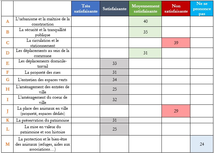 Questionnaire: des réponses plus marquées sur cadre de vie, aménagement et sécurité… 20 janvier 2026 Ce graphique donne le niveau de satisfaction (ou non) des éléments listés ci-dessous. Dans le tableau, ne sont retenus que les points arrivant en premier. A la question « Selon vous, que manquerait-il dans cette offre », les répondants ont indiqué en priorité les propositions suivantes : Suivez-nous, s'il vous plaît... 5 20