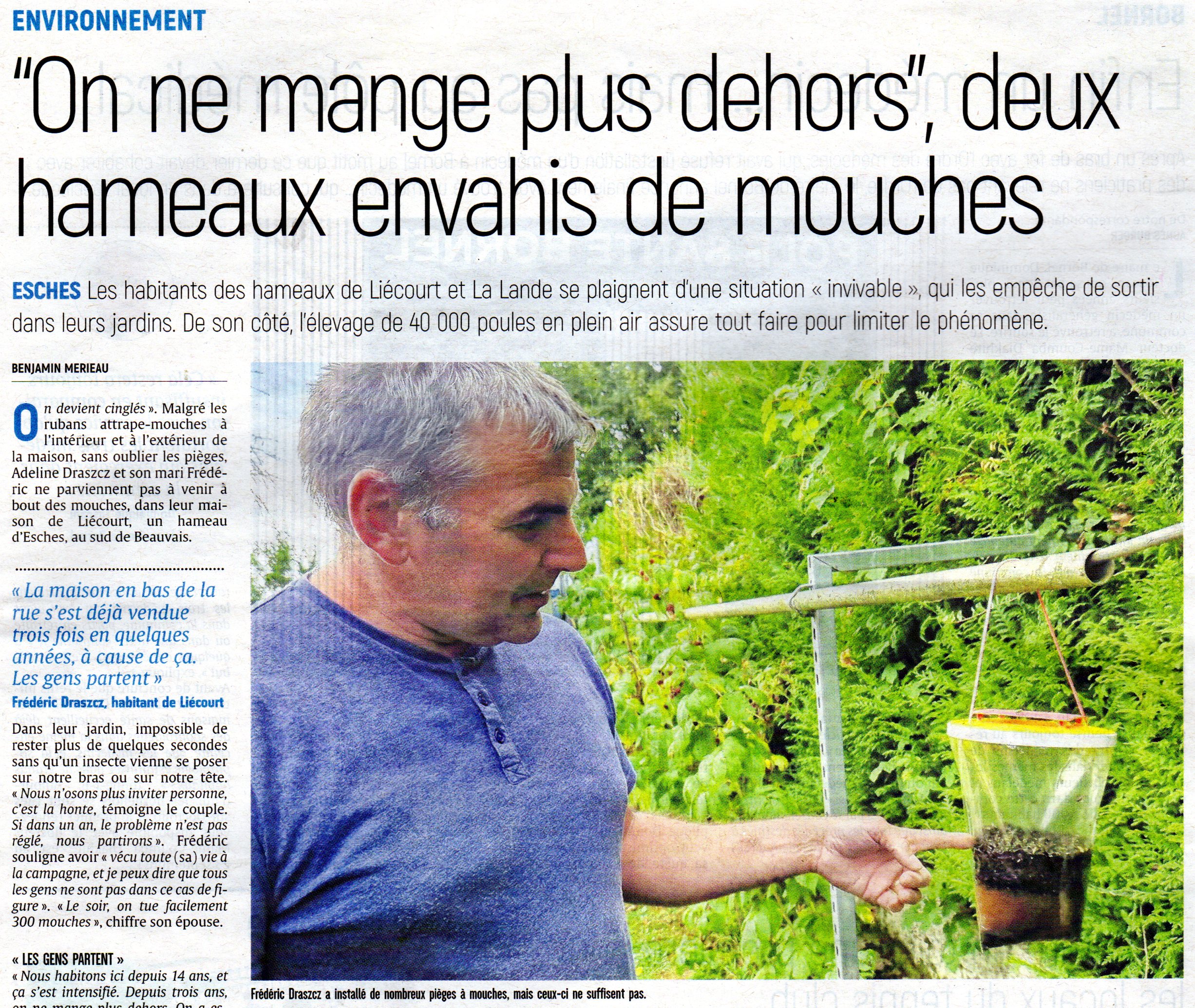 Lors de l’ouverture de cet élevage de poules, déjà de fortes réserves avaient émises par la population et un débat tendu avait eu lieu en Conseil municipal lors duquel Gérard CHATIN avait fait accepter des réserves supplémentaires à la délibération et sur laquelle Thierry REMOND et Evelyne BAILLON s’étaient abstenus. Cet article ne fait pas état de gêne sur Sainte-Geneviève mais on a pu constater une présence plus importante de mouches sur notre territoire. Petite revue des articles parus à l’époque sur le sujet: Dans le Courrier picard d’aujourd’hui, on reparle des poules…. Publié le …