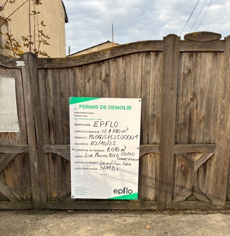 Après le Conseil municipal du 23 Novembre dernier et la réponse du Maire plus qu’insatisfaisante sur le fond, les élus « Un Nouvel Avenir » ont demandé au Directeur de l’EPFLO confirmation des dires des propos tenus en réponse à leur question sur le sujet du terrain DENIS . Il n’ont été confirmés que très partiellement puisque l’Etablissement public départemental confirme n’avoir que peu d’éléments sur le projet annoncé. Il est indiqué que le permis de démolir, annoncé comme obtenu lors du Conseil du 23 ce que ce panneau confirme, ne leur a pas été transmis. Une lettre en date du 4 Novembre a été déposée à l’intention de Monsieur le Maire dans laquelle il lui est instamment demandé la tenue d’une réunion de la Commission Urbanisme et l’organisation d’une concertation publique comme il est de règle dans ce type de situations. Par ailleurs, une information ciblée aux riverains a été faite. Dans le journée du 4 Novembre, l’affichage du permis de démolir a été fait.